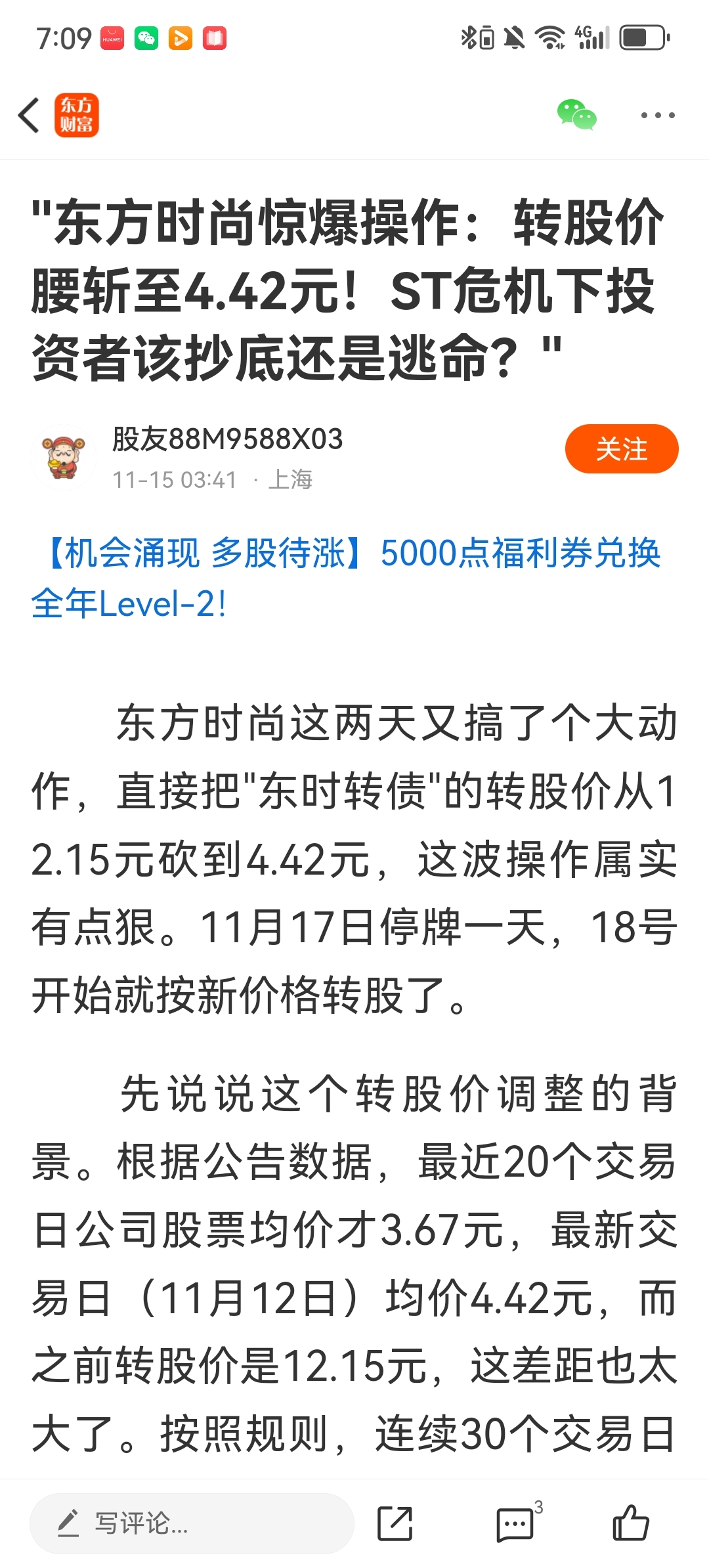 这小便连逻辑都没搞清楚就来丢人现眼瞎说,20日均价3.67,最新价4.42元,按你这说法应该选择3.67转股价吗?岂不是斩到小腿了,选择一个高于4.42元的价格有依据吗?基本面不好,基本面好的话用的着重整吗?赶紧删掉吧!别丢人了。