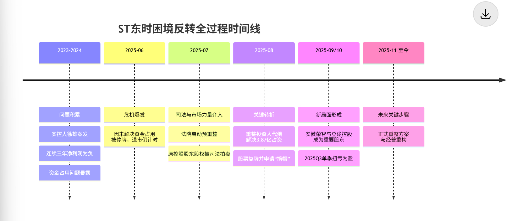 ST东时的反转并非依靠原有管理层自救,而是在退市倒逼下,由北京大兴果子、法院、重整投资人等外部力量共同推动的一次“刮骨疗毒”。