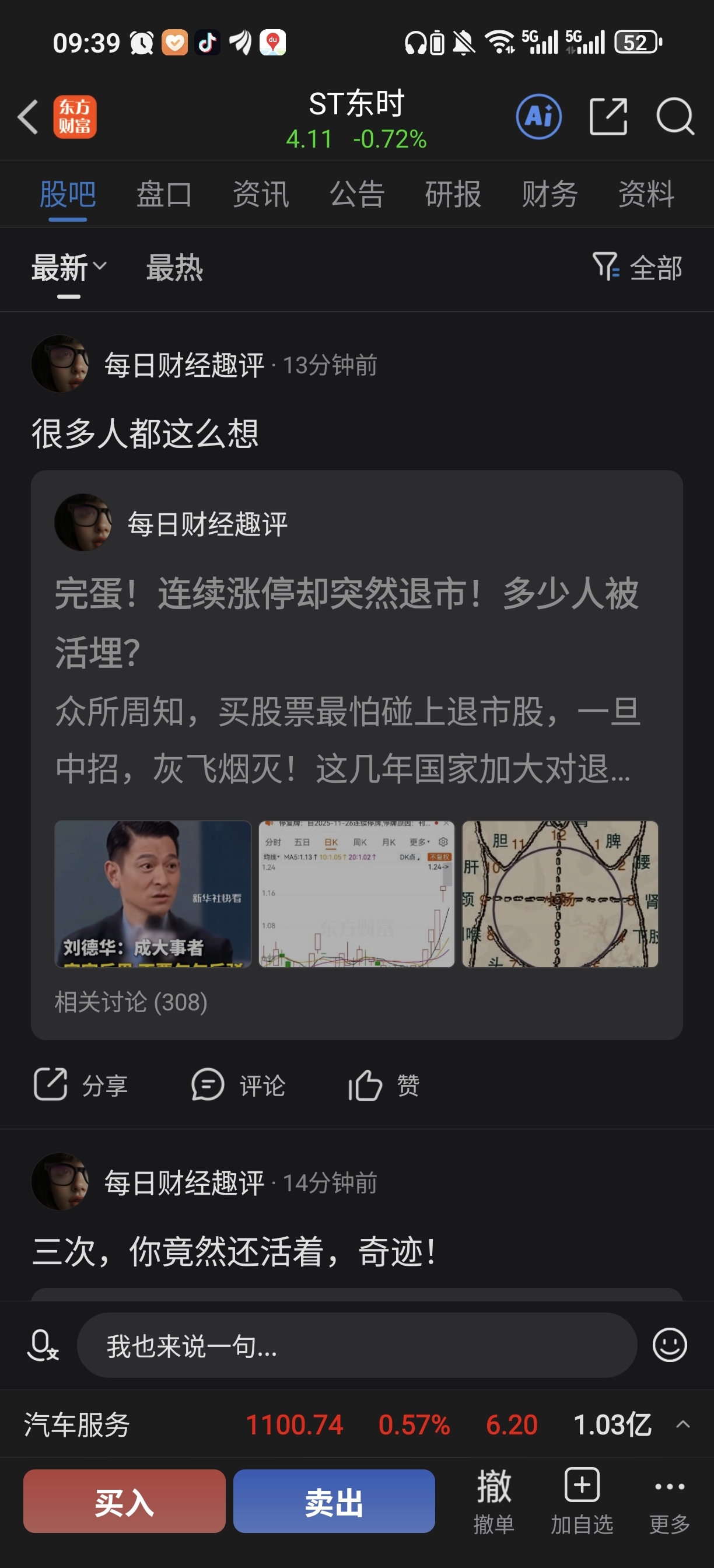 $ST东时(SH603377)$ 这人有毛病,在这里刷屏,不买就滚,在这里制造恐慌