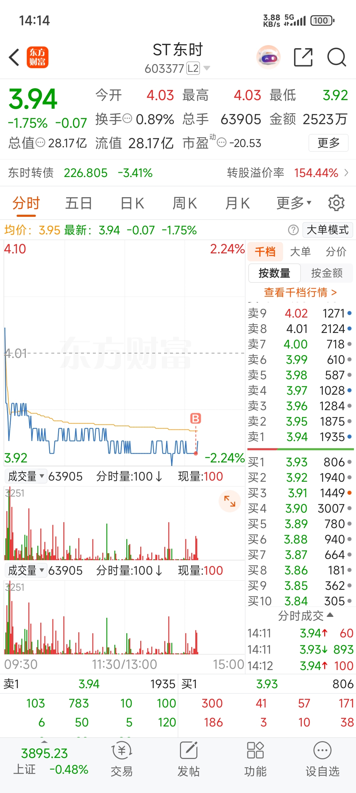$ST东时(SH603377)$ 兄弟们,今天打个底仓,每次下跌5%加仓1万,一起收割主力