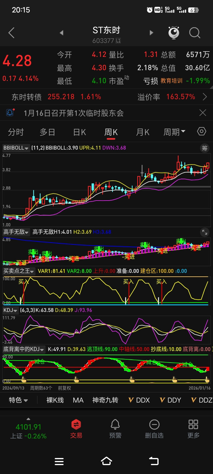 $ST东时(SH603377)$ 吧里一帮乌鸦整天叽叽喳喳的,都是看消息炒股啊!我从来不看新闻买卖股票,只看走势,难道东易那波上涨是靠利好消息才涨的?错了,是靠涨停基因,还没st前就有强庄拉连续涨停板,还有走势,日周月线的布林带都收宿得很好,这才是主要的,东时为啥没大涨,受周线布林带限制,不可能有大行情,从我发的图片走势就能看明白。