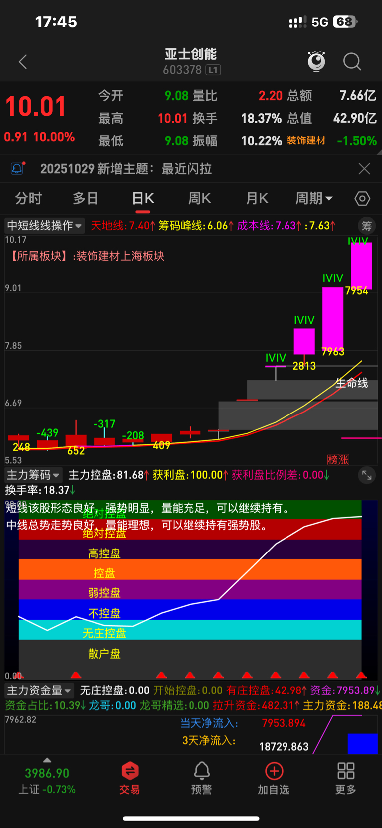$亚士创能(SH603378)$ 市场总龙头,很多龙看他的脸色