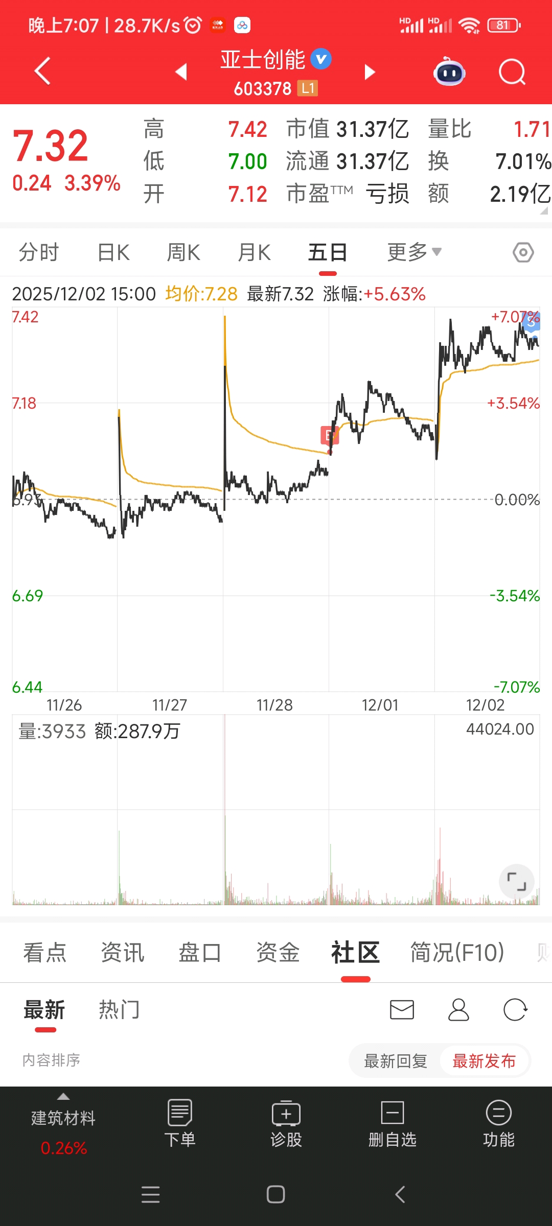$亚士创能(SH603378)$ 还好尾盘卖了,没有格局