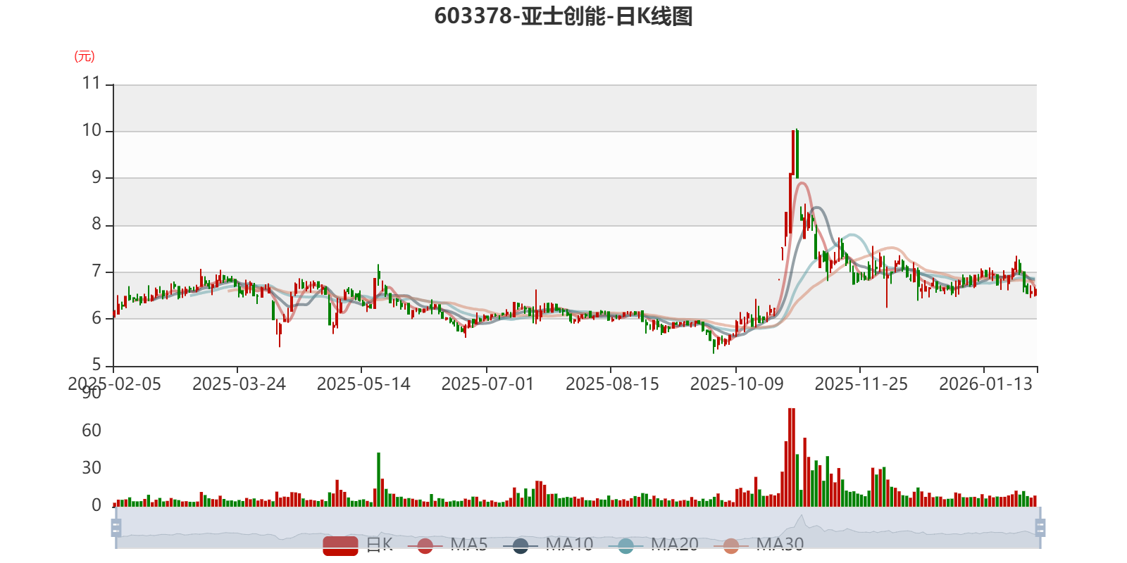 中证智能财讯亚士创能(603378)1月30日晚间披露2025年度业绩预告,预计2025年归母净利润亏损8.3亿元至12.5亿元,上年同期亏损3.29亿元;扣非净利润亏损8.6亿元至12.9亿元,上年同期亏损3.58亿元。以最新收盘价计算,市净率(LF)约2.85倍,市销率(TTM)约3.92倍。