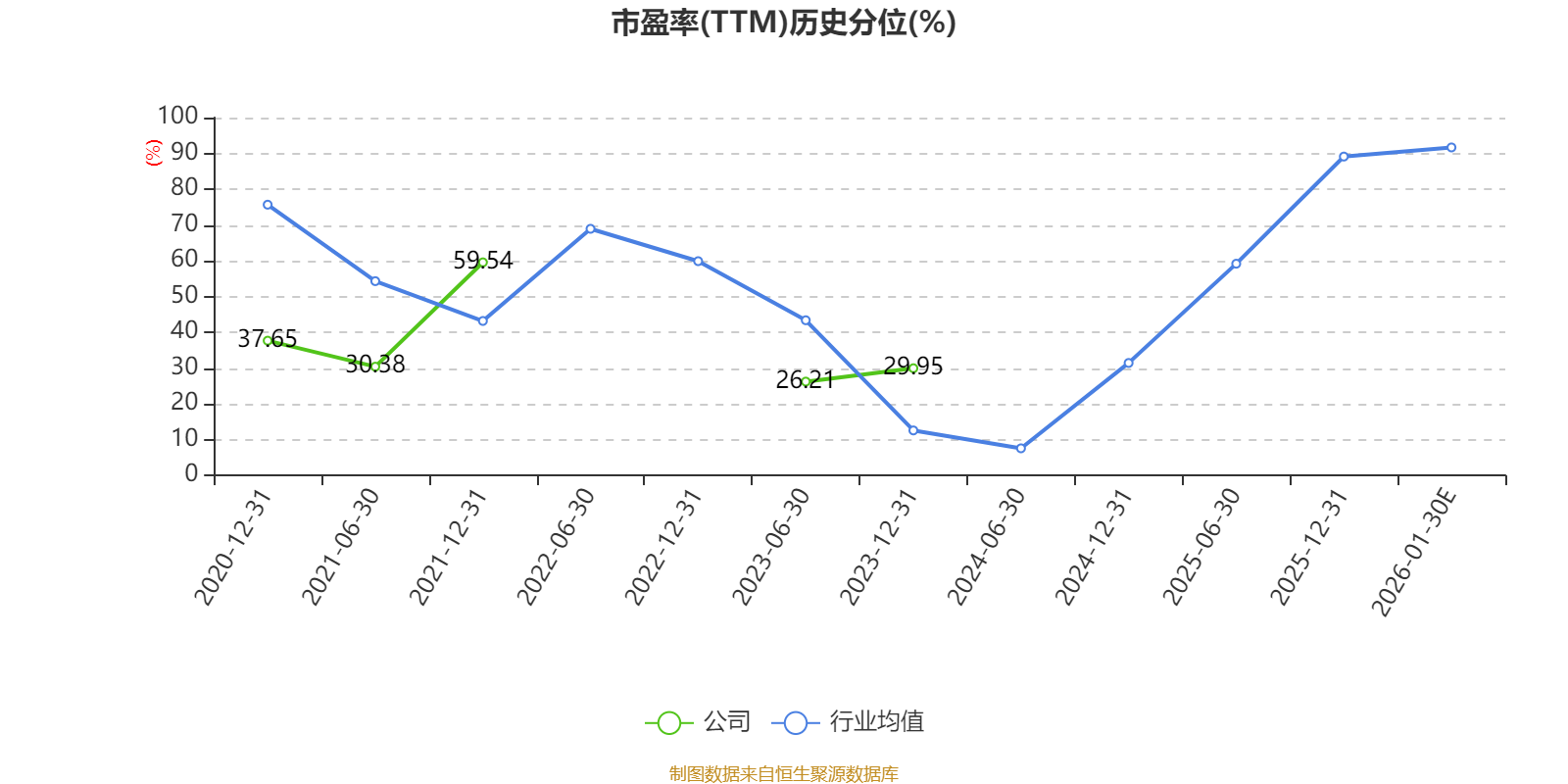 以本次披露业绩预告均值计算,公司近年市盈率(TTM)图如下所示: