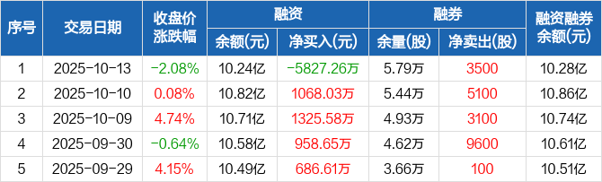三美股份:融资净偿还5827.26万元,融资余额10.24亿元(10-13)