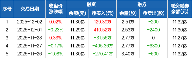 三美股份:融资净买入129.39万元,融资余额11.3亿元(12-02)