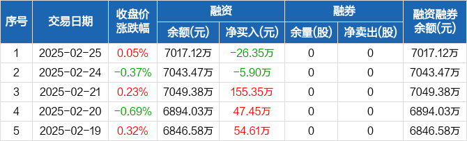 永臻股份:融资净偿还26.35万元,融资余额7017.12万元(02-25)