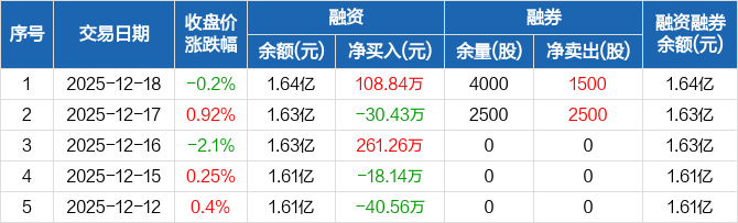 永臻股份:融资净买入108.84万元,融资余额1.64亿元(12-18)
