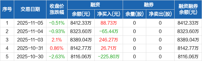 海阳科技:融资净买入88.73万元,融资余额8412.33万元(11-05)