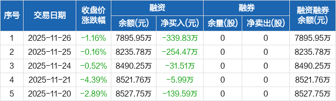 海阳科技:连续6日融资净偿还累计795.12万元(11-26)