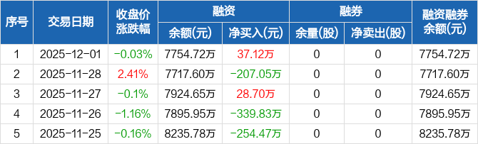 海阳科技:融资净买入37.12万元,融资余额7754.72万元(12-01)
