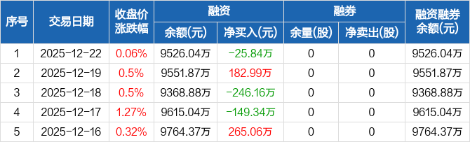 海阳科技:融资净偿还25.84万元,融资余额9526.04万元(12-22)
