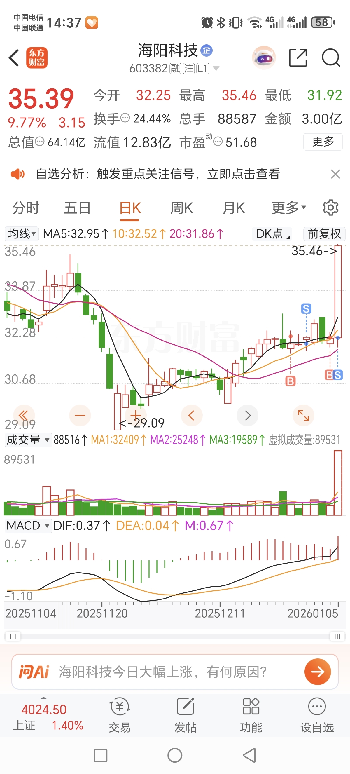 $海阳科技(SH603382)$ 感谢我吧,筹码一交就涨停