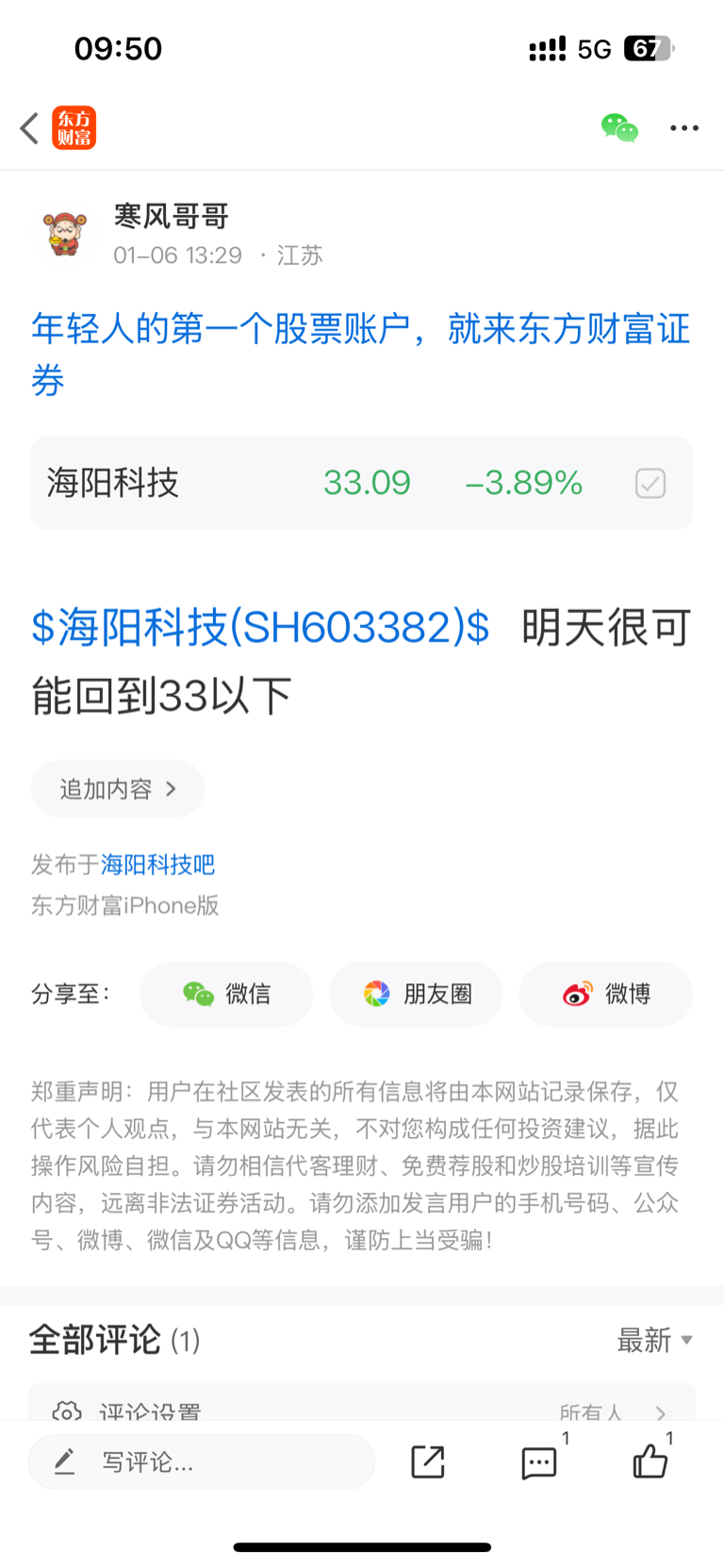 温馨提示: 1.根据《证券法》规定,禁止编造、传播虚假信息或者误导性信息,扰乱证券市场;2.用户在本社区发表的所有资料、言论等仅代表个人观点,与本网站立场无关,不对您构成任何投资建议。用户应基于自己的独立判断,自行决定证券投资并承担相应风险。《东方财富社区管理规定》
