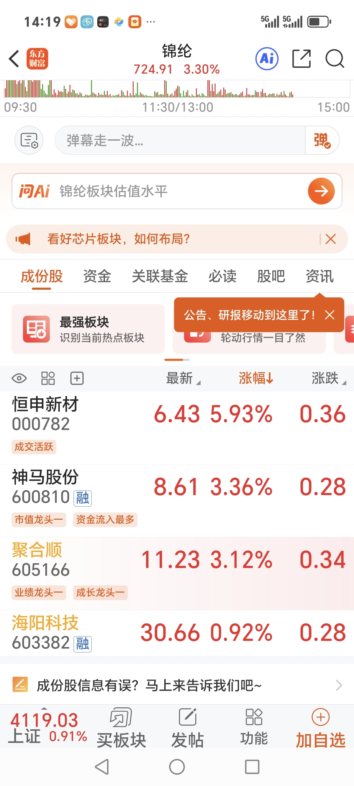 $海阳科技(SH603382)$ 就你最落后