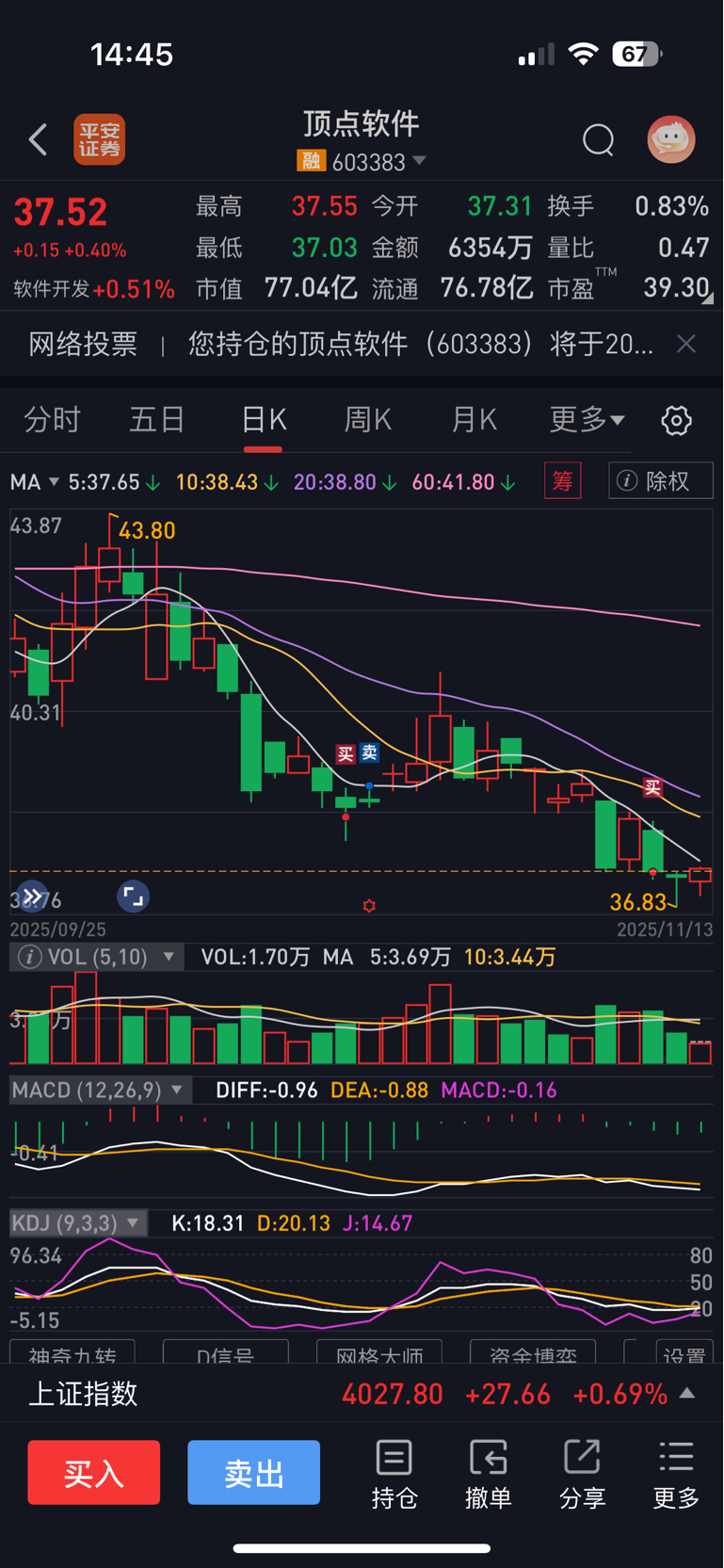$顶点软件(SH603383)$ 这样的行情都不动……看来真的完蛋了,