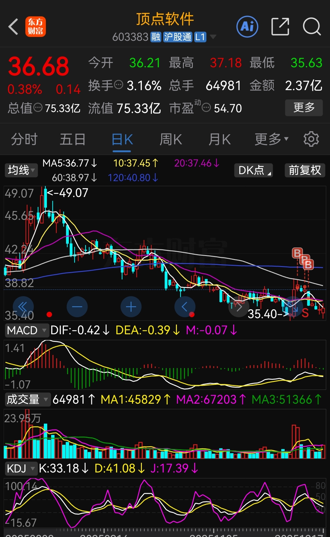 $顶点软件(SH603383)$ 今天放量一倍了,再加上底部多次背离,明天必涨无疑!看多!