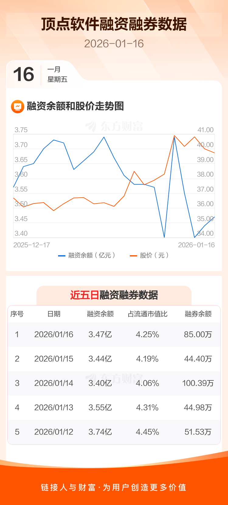 交易所最新数据显示,顶点软件于2026年1月16日获融资买入4212.99万元,融资偿还3964.05万元,当日融资净买入248.95万元。目前,该股融资余额3.47亿,占流通市值比例为4.25%。