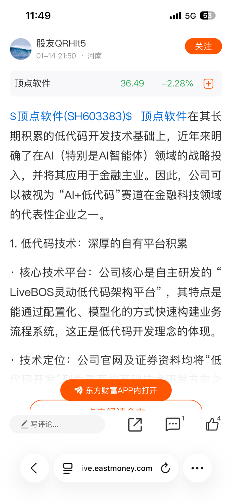 $顶点软件(SH603383)$ 1月14号,股价好不容易涨一点,股友QRHIt5这苟托就发帖唱多,每次这苟托发帖唱多,股价都往下走,创新低。各位股友下次看到这个苟托一起骂它