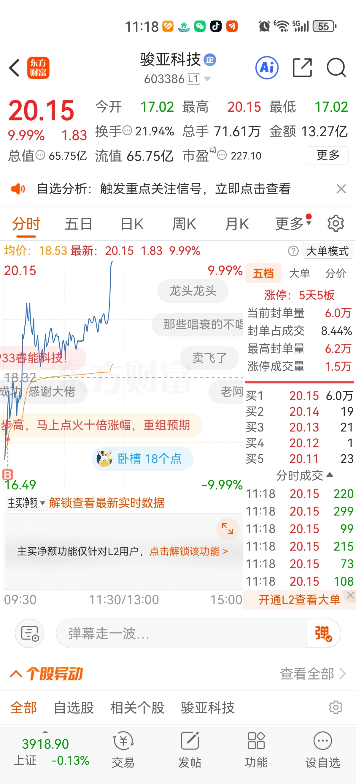 $骏亚科技(SH603386)$ 有换手,才有新高度!继续连板