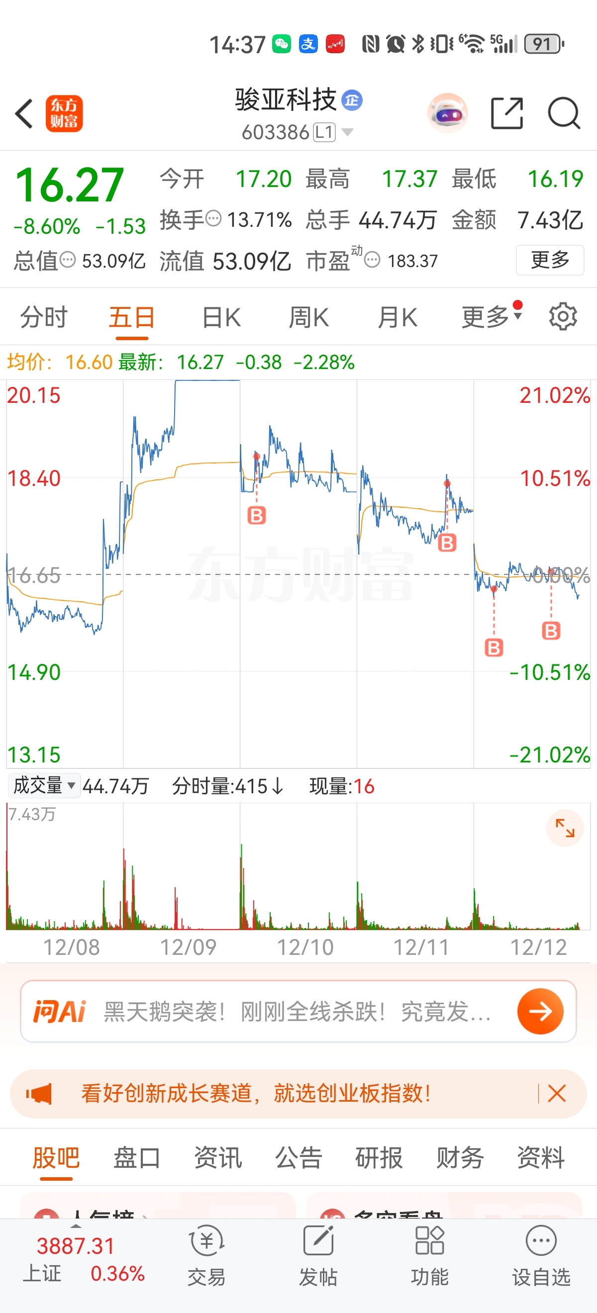 $骏亚科技(SH603386)$ 惨了,不知道该加仓还是减仓