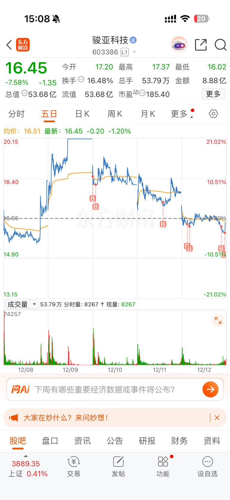 $骏亚科技(SH603386)$ 下周一希望解套……