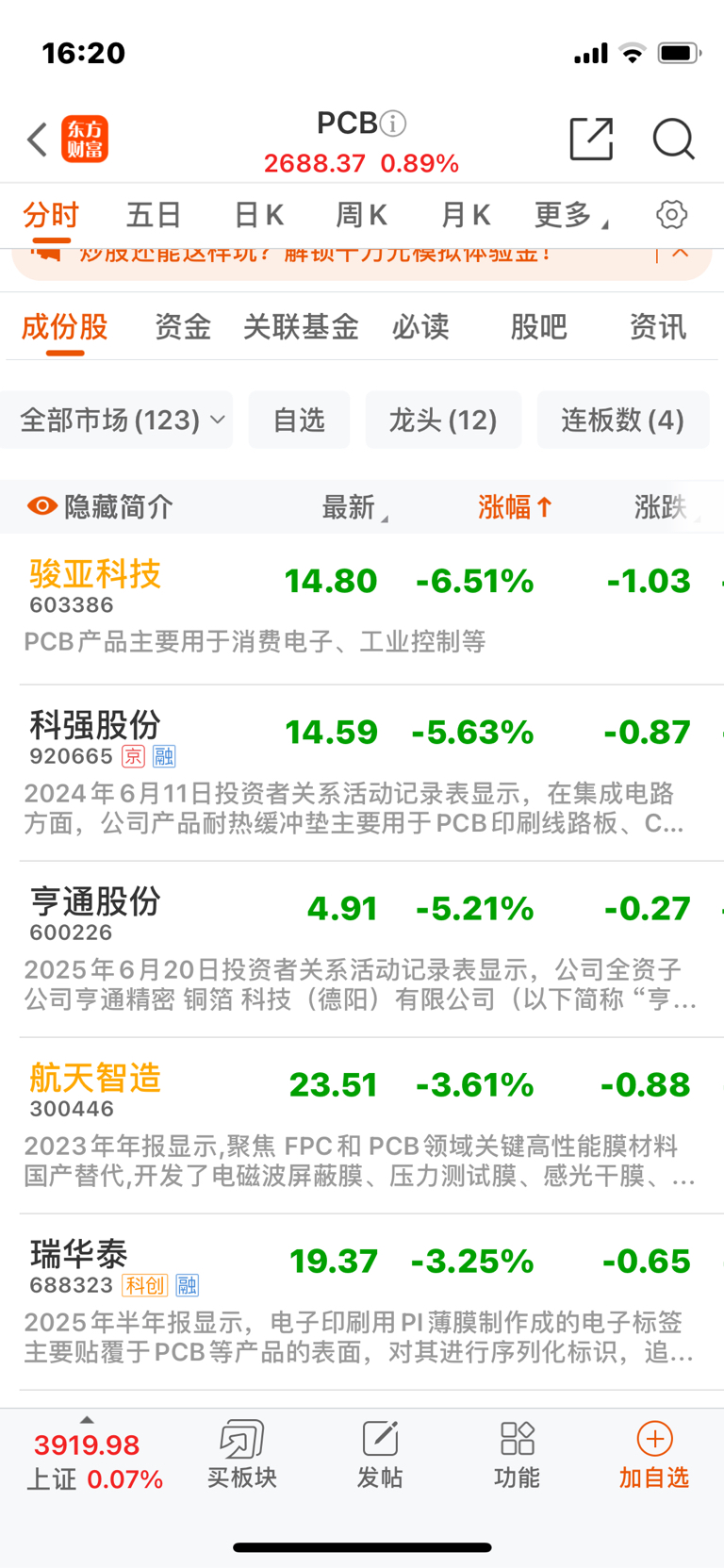 $骏亚科技(SH603386)$ 今天PCB板块跌幅榜龙头