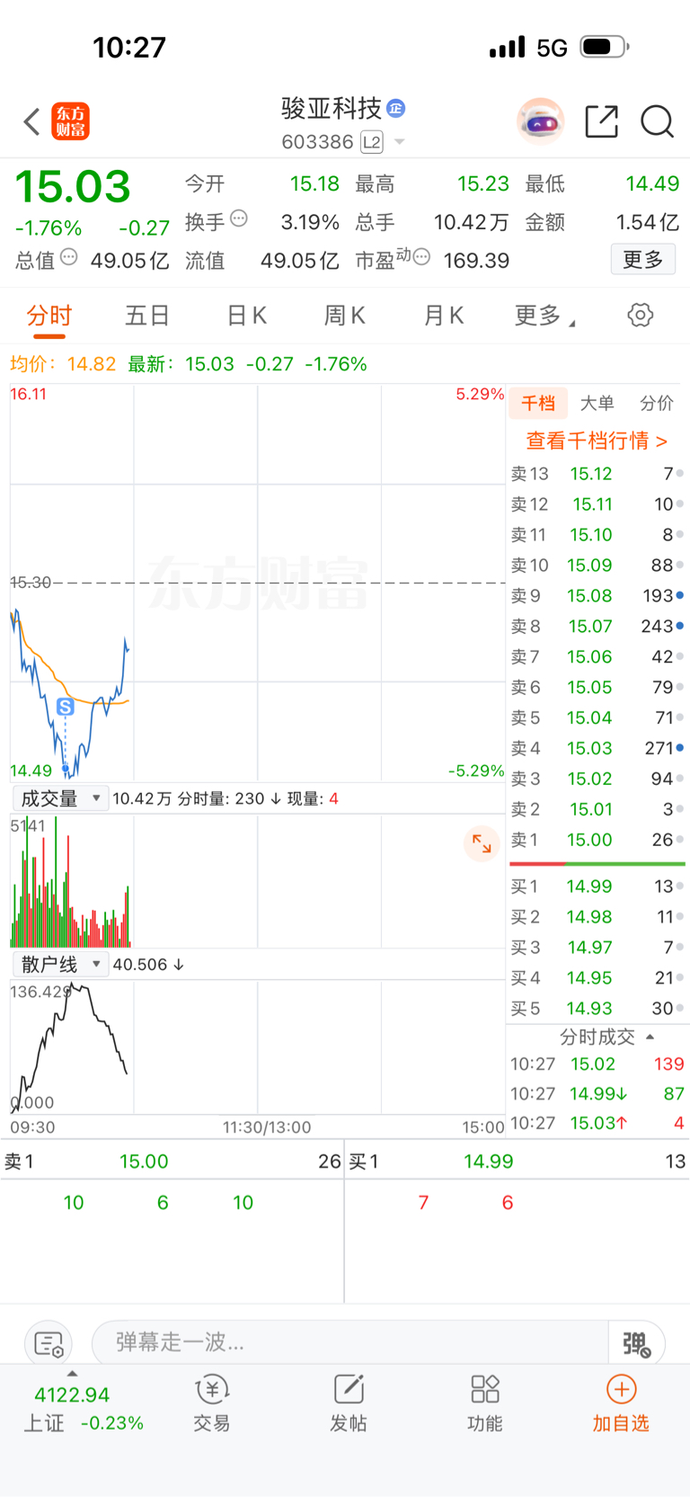 $骏亚科技(SH603386)$ 我清了,你可以拉了