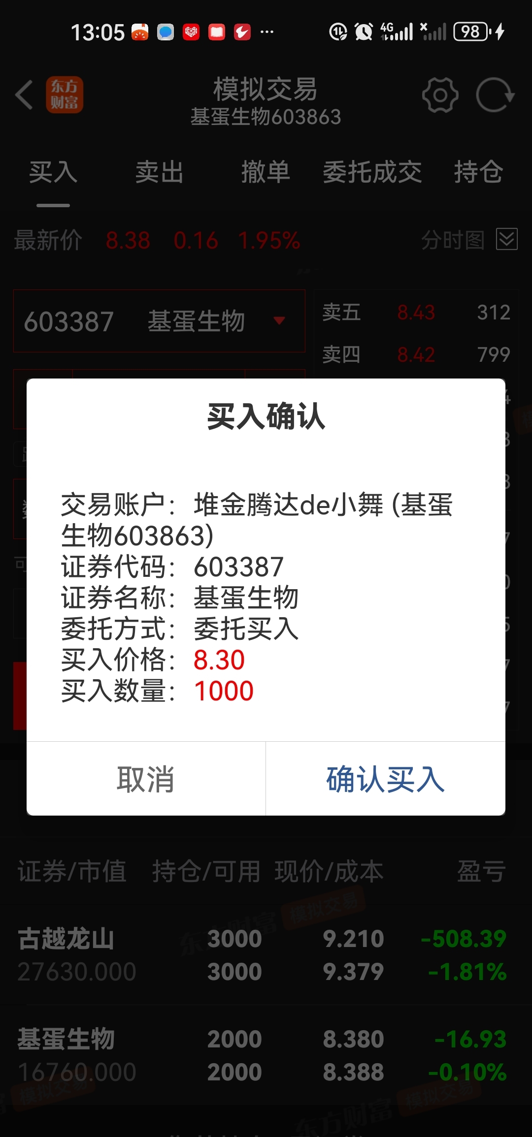 $基蛋生物(SH603387)$ 已挂单