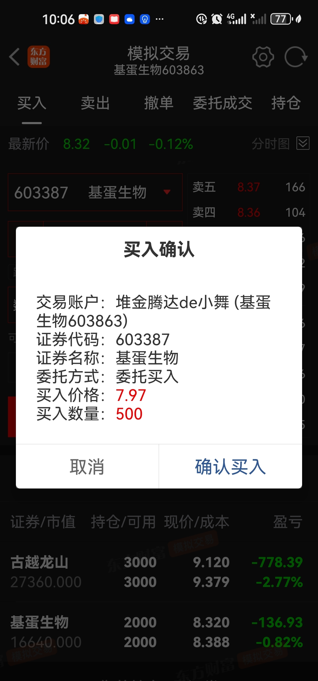 分二次,模拟资金先来。本操作属小韭菜没事练手玩,不构成任何交易,或建议。与股拖,