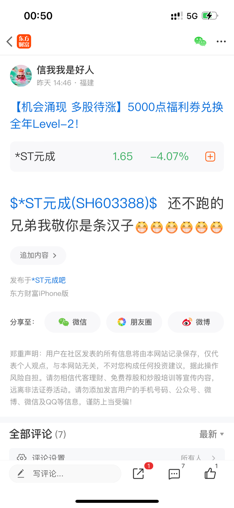 $*ST元成(SH603388)$ 我真的是大大的好人没出来的兄弟这下钱包得打三折了