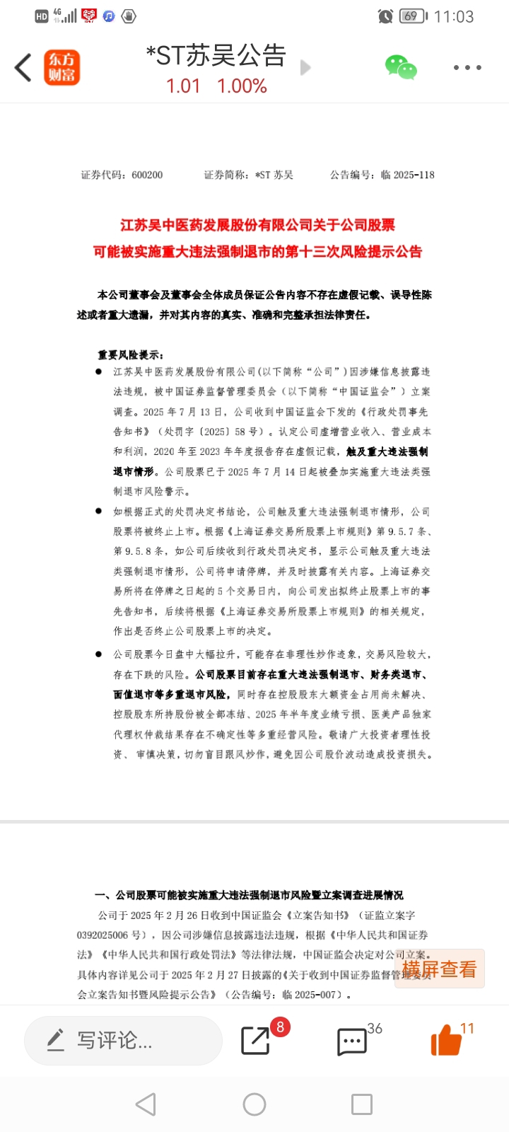 ST苏吴第13次风险提示公告都没有退市,ST元成才第一次风险提示,不要慌!最多六