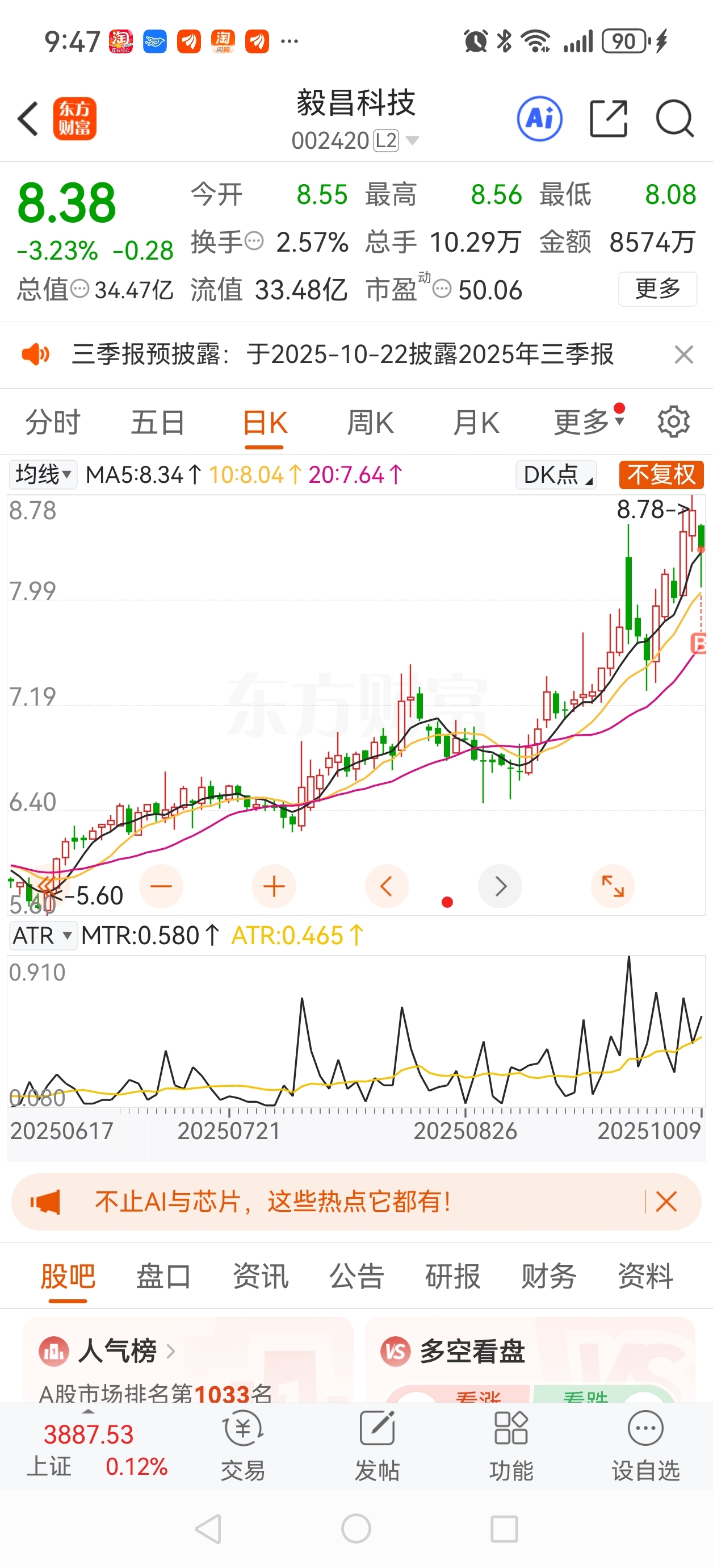10月玩正股了今年不玩ST了!我还是喜欢小盘股,毅昌科技做为材料轻量化科技公司,在未来机器人用料上市场很大,而且比亚迪汽车面临最大问题也是减重!这股应该不错