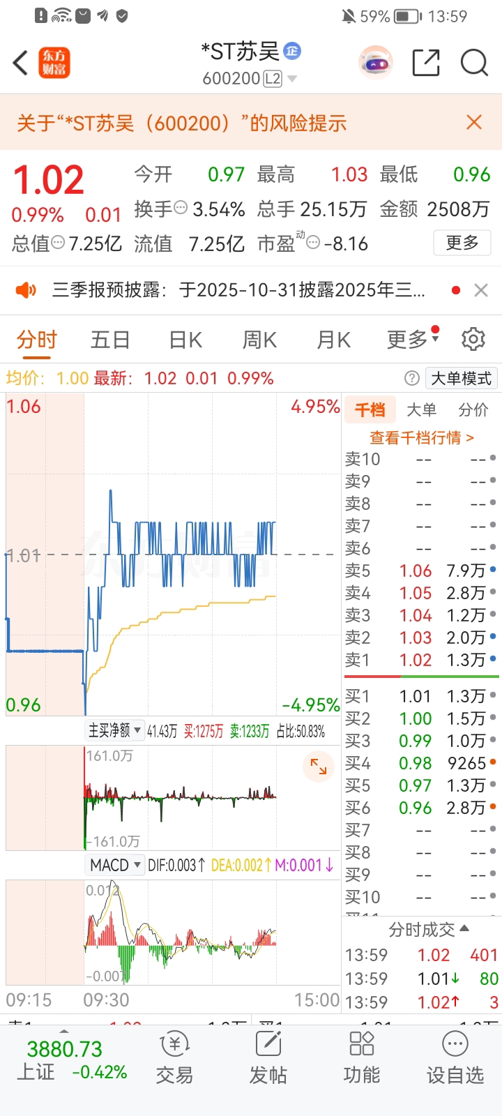 ST苏吴已经第13次退市风险提示了现在都拉红了,元成怎么才第一次风险提示把我闷里