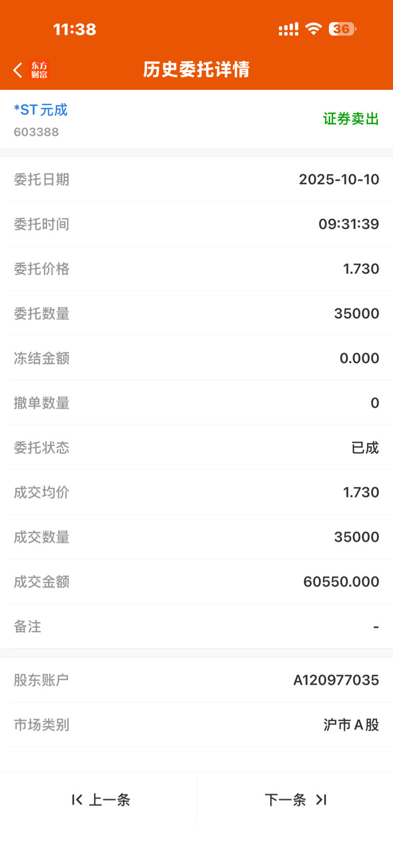 $*ST元成(SH603388)$ 我10号那天跑的