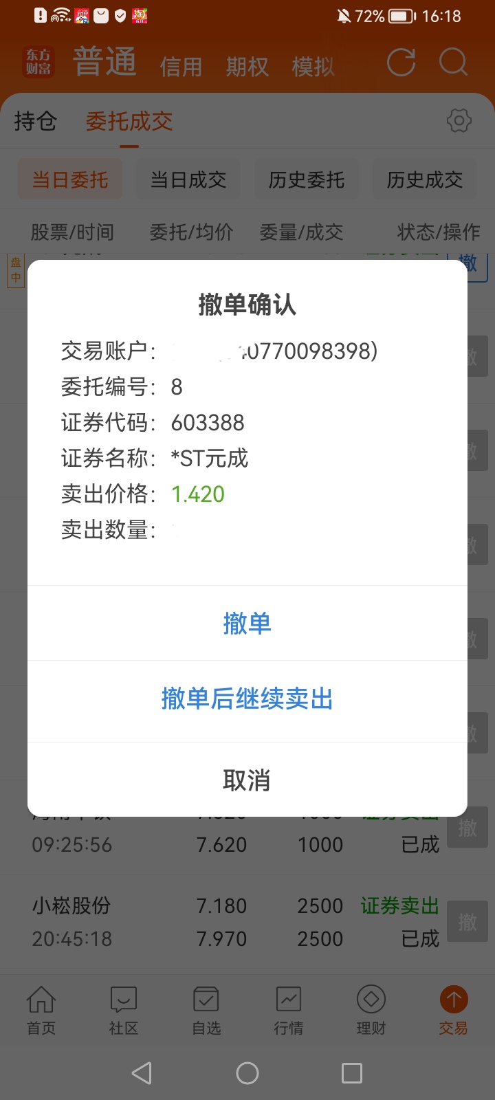 $*ST元成(SH603388)$ 委托单排号第8,明天能出去吗???