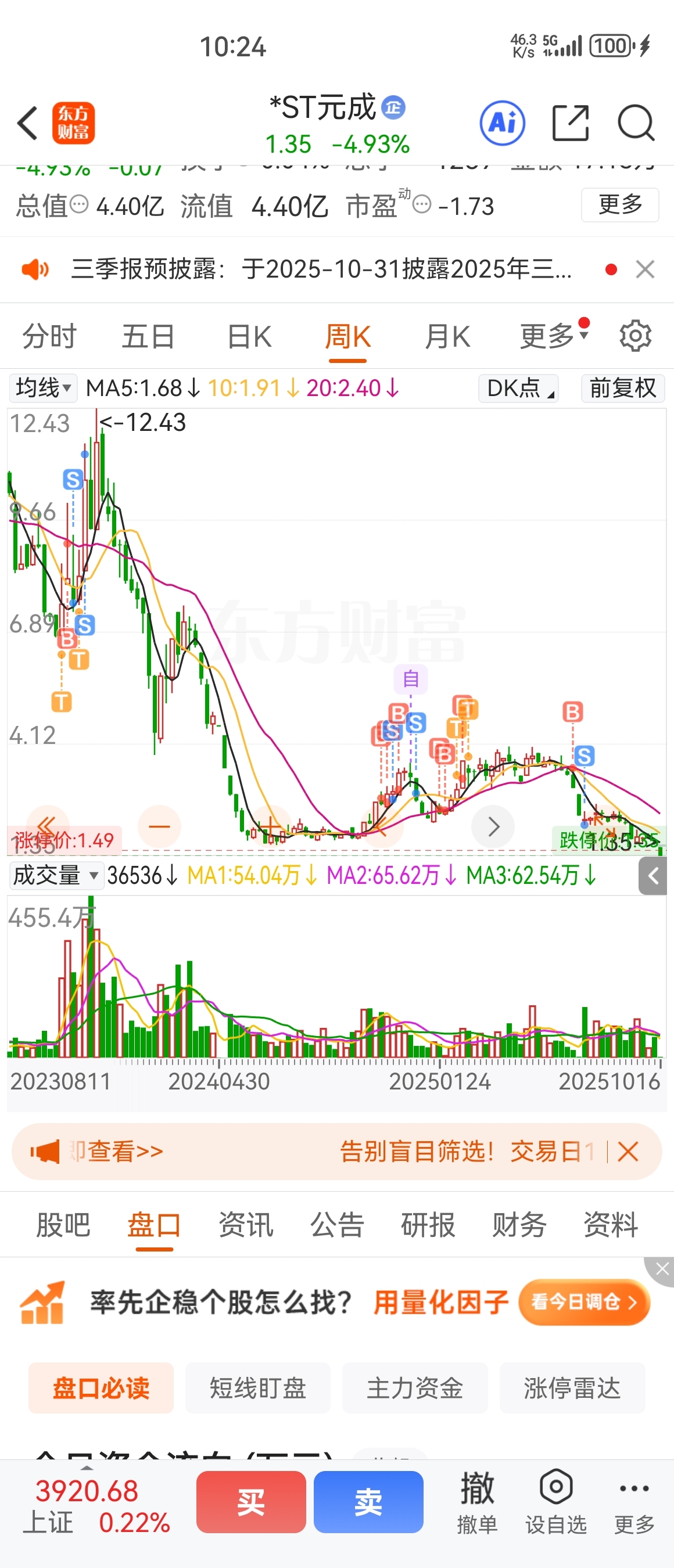 $*ST元成(SH603388)$ 本来赚几万,还倒贴我几千,庆幸退市之前卖了,留了一百股警告自已