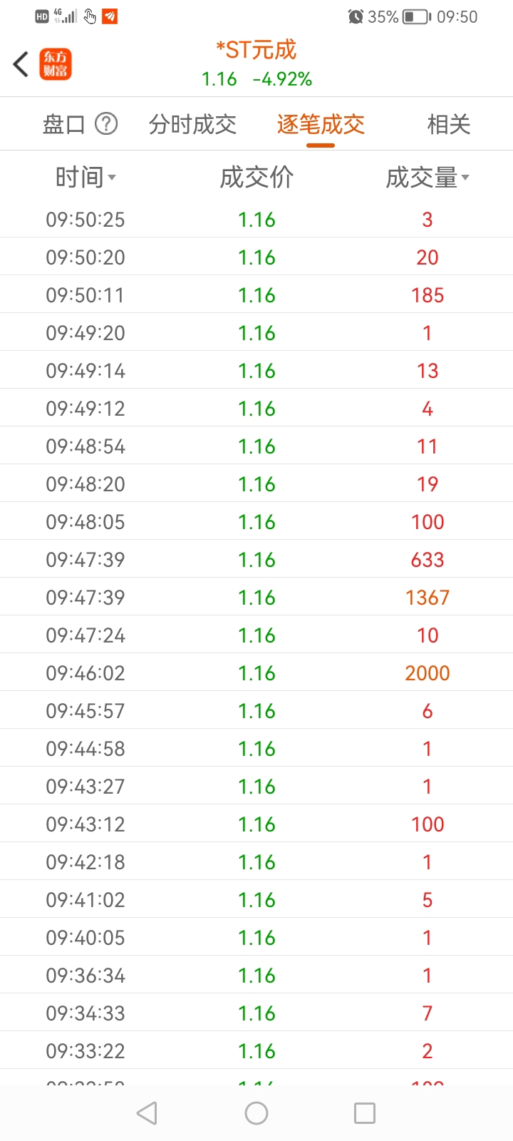 $*ST元成(SH603388)$ 逐笔成交有千手哥撬板,再来几个万手哥就撬开板啦
