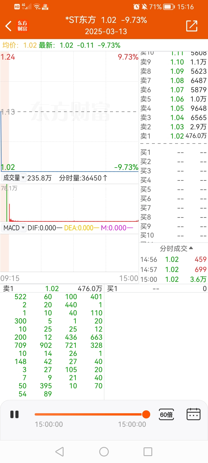 2025.3.12东方集团地天板!然后一字跌停去了老三板!元成开板后地板?然后会