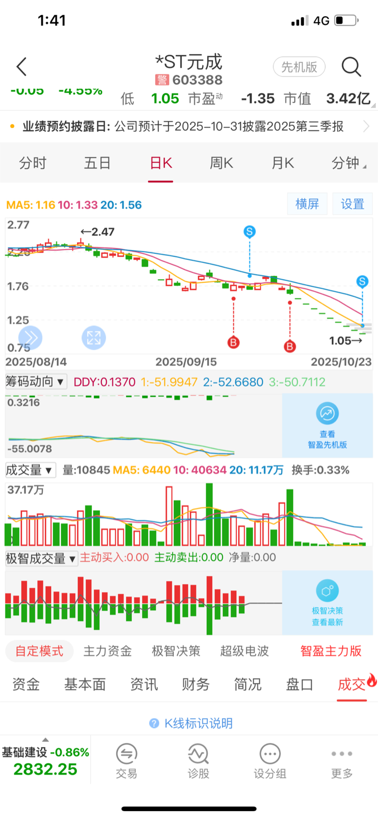 $*ST元成(SH603388)$ 谢谢买我票的大哥,这股真是死里逃生,把我从苏吴赚的都亏里面了。以后立案调查的一律不碰,再碰就扇自己的脸