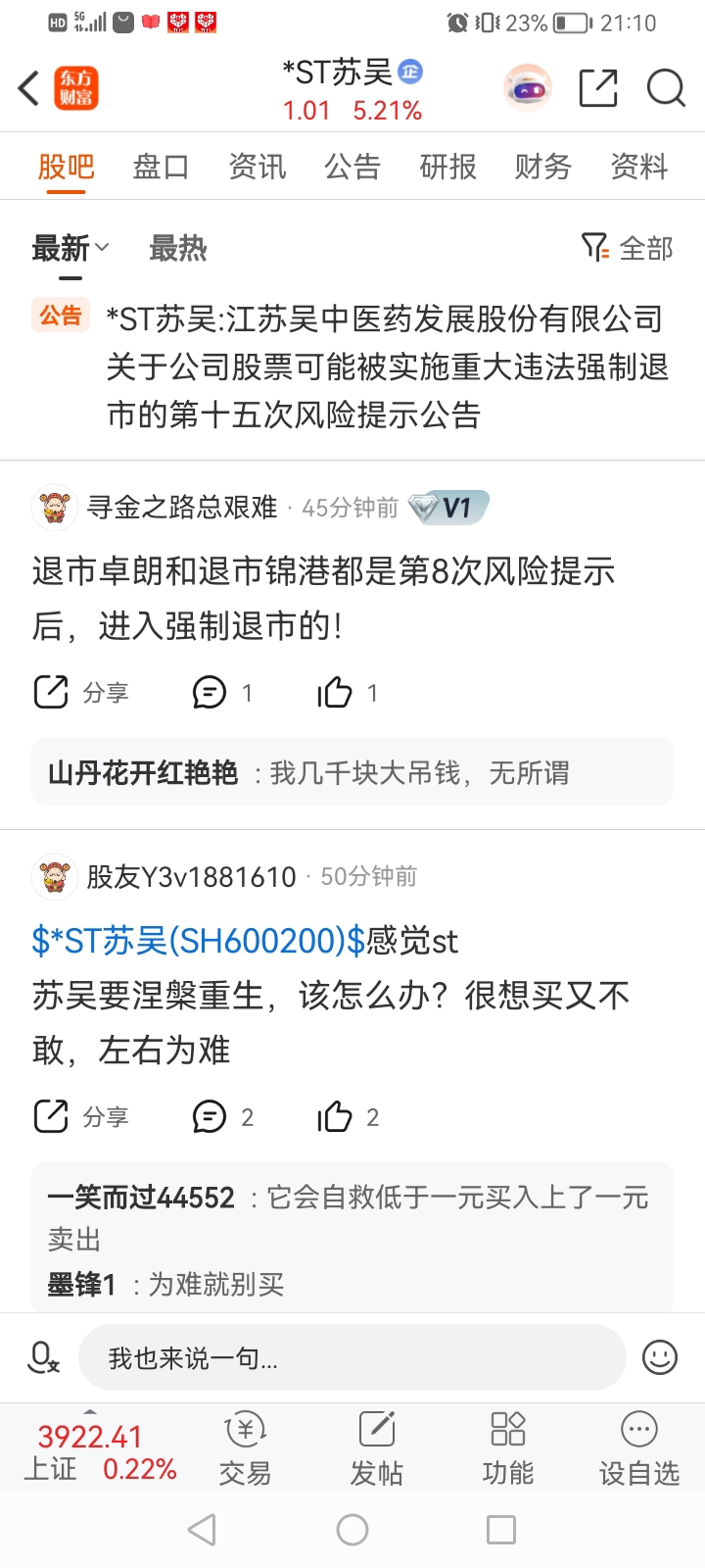 元成的大哥苏吴已经发了十五次退市风险提示公告今天还涨停了,元成才发第三次风险提示