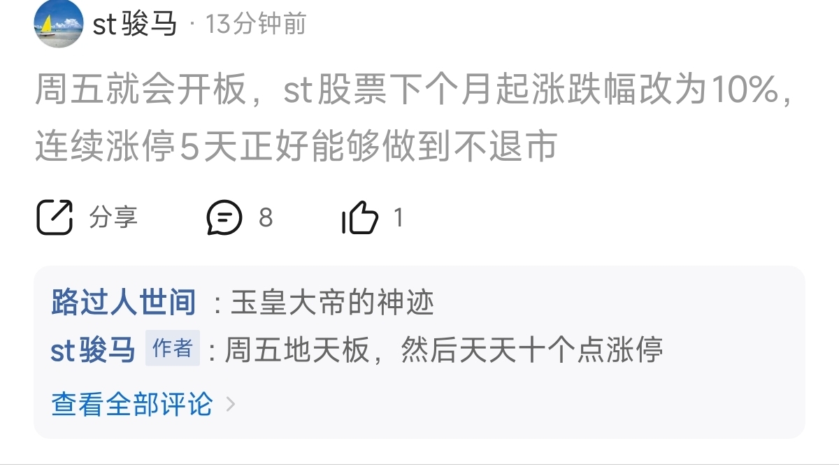 $*ST元成(SH603388)$ 这几个圣金,看了营销号就觉得要改成10%,从来不舍的去找原文件,整天只会抱着幻想,害自己可以,别害别人,请你们别在这理发店@st骏马 <