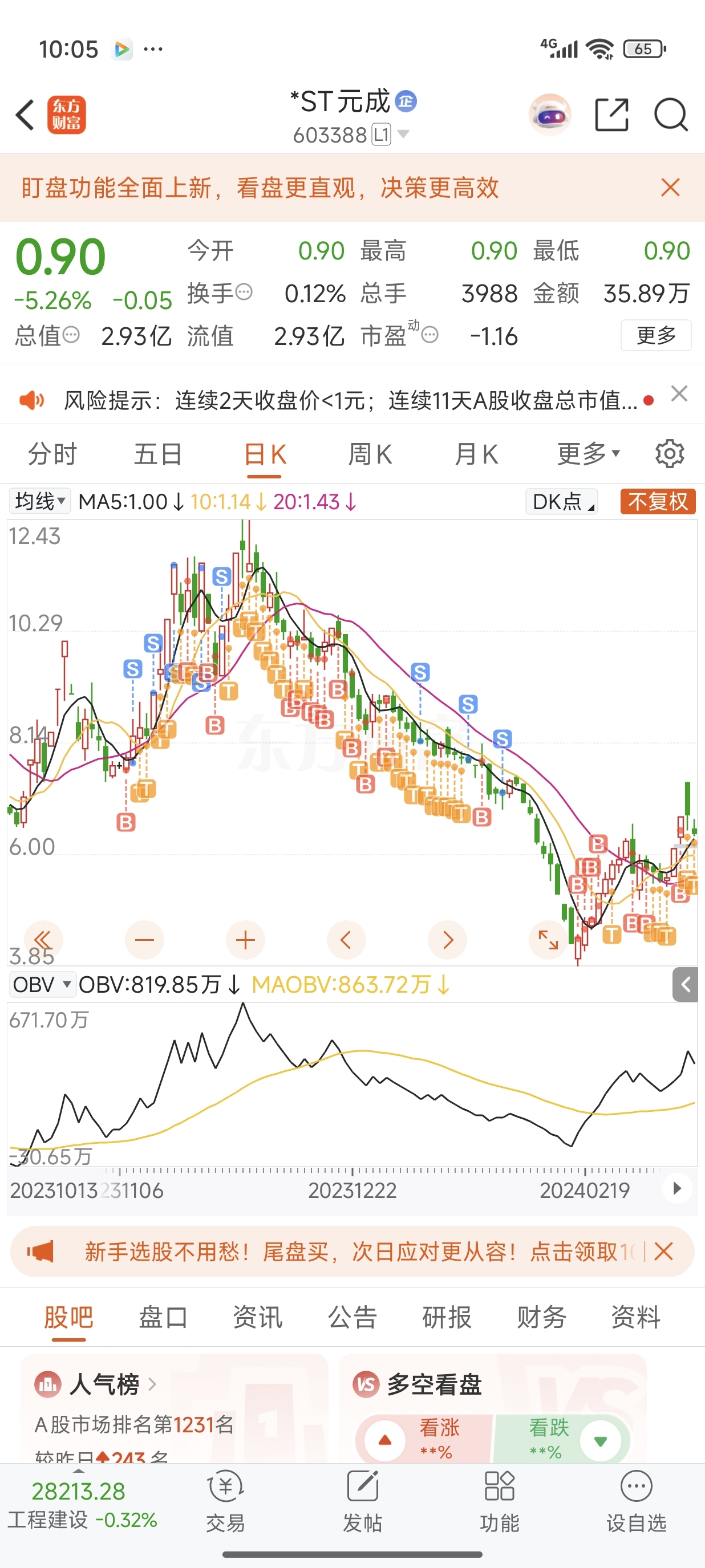 $*ST元成(SH603388)$ 炒数字的那年!元即第一!纪念一下