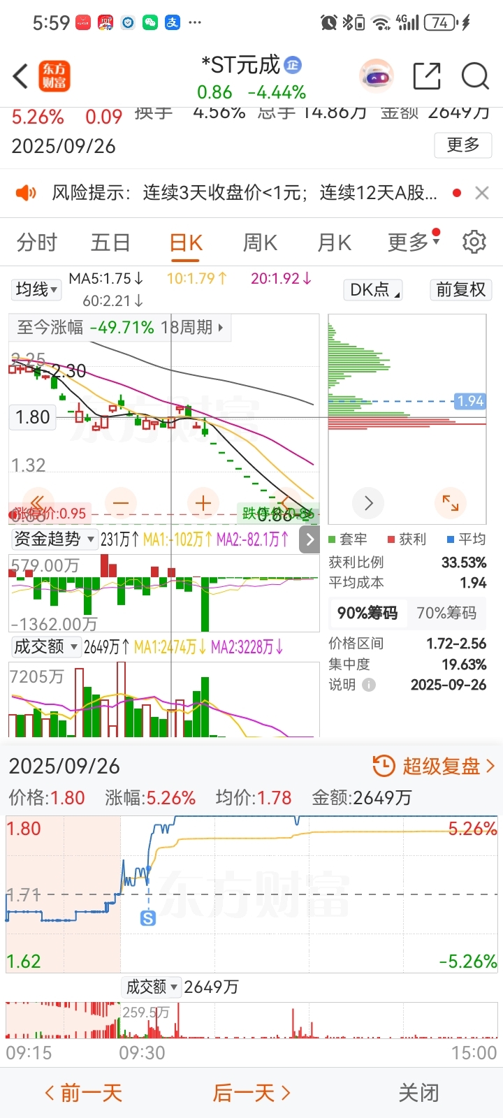 $*ST元成(SH603388)$ 我那天卖飞了直拍大腿