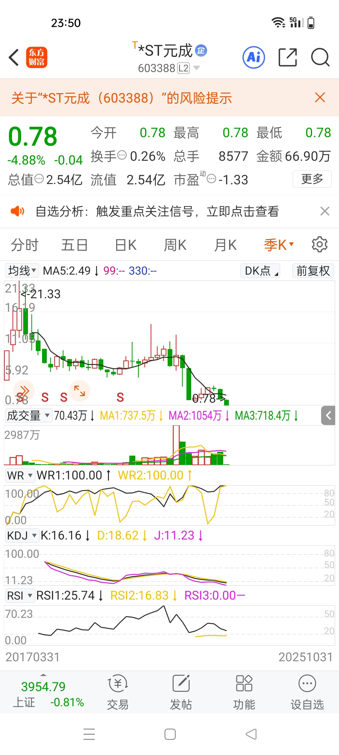 $*ST元成(SH603388)$ 巴比Q了,套路结束,股票退市,散户家底己被没收,真实的大A,你在大A讲投资,控盘人在玩套路,你是入局,他是做局。