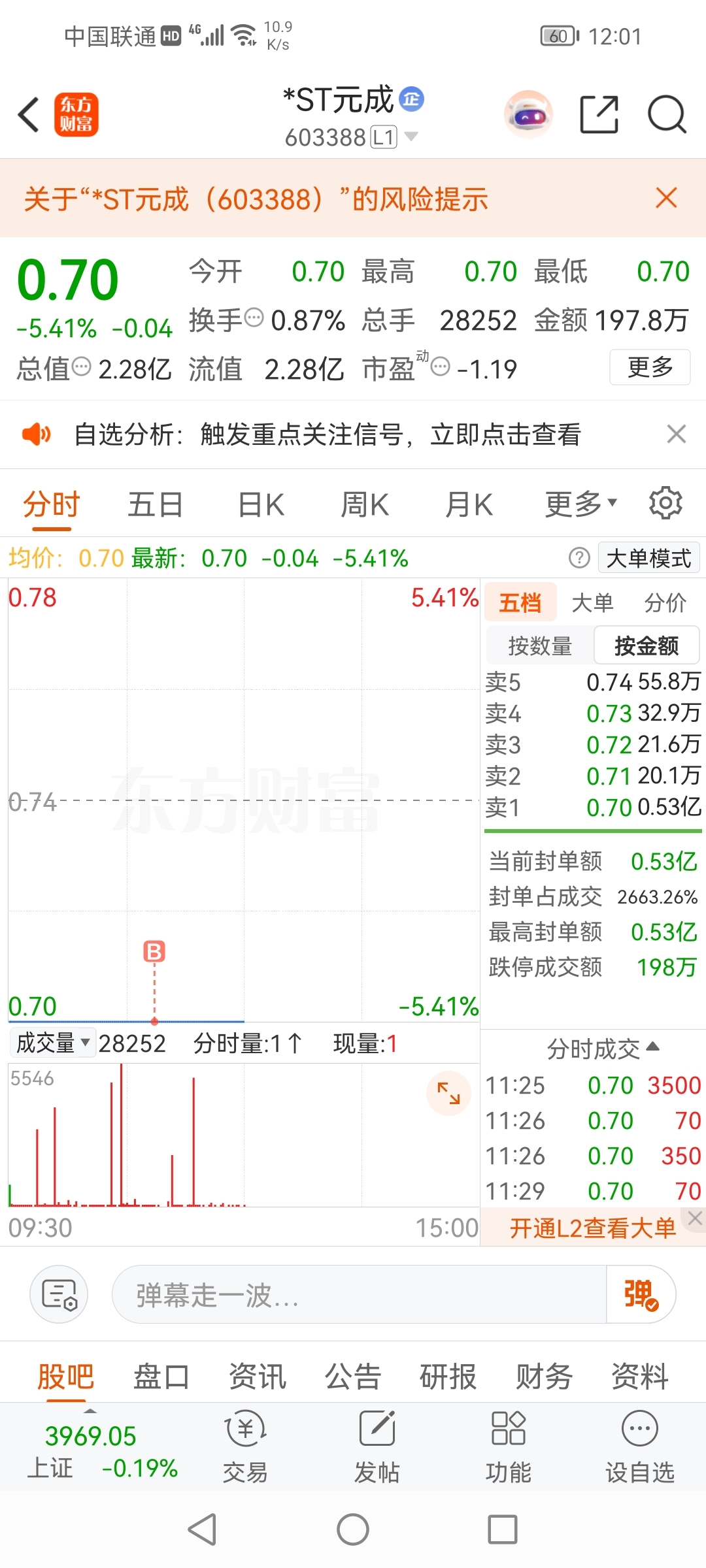 $*ST元成(SH603388)$ 今日冲值70元,以示尊敬。
