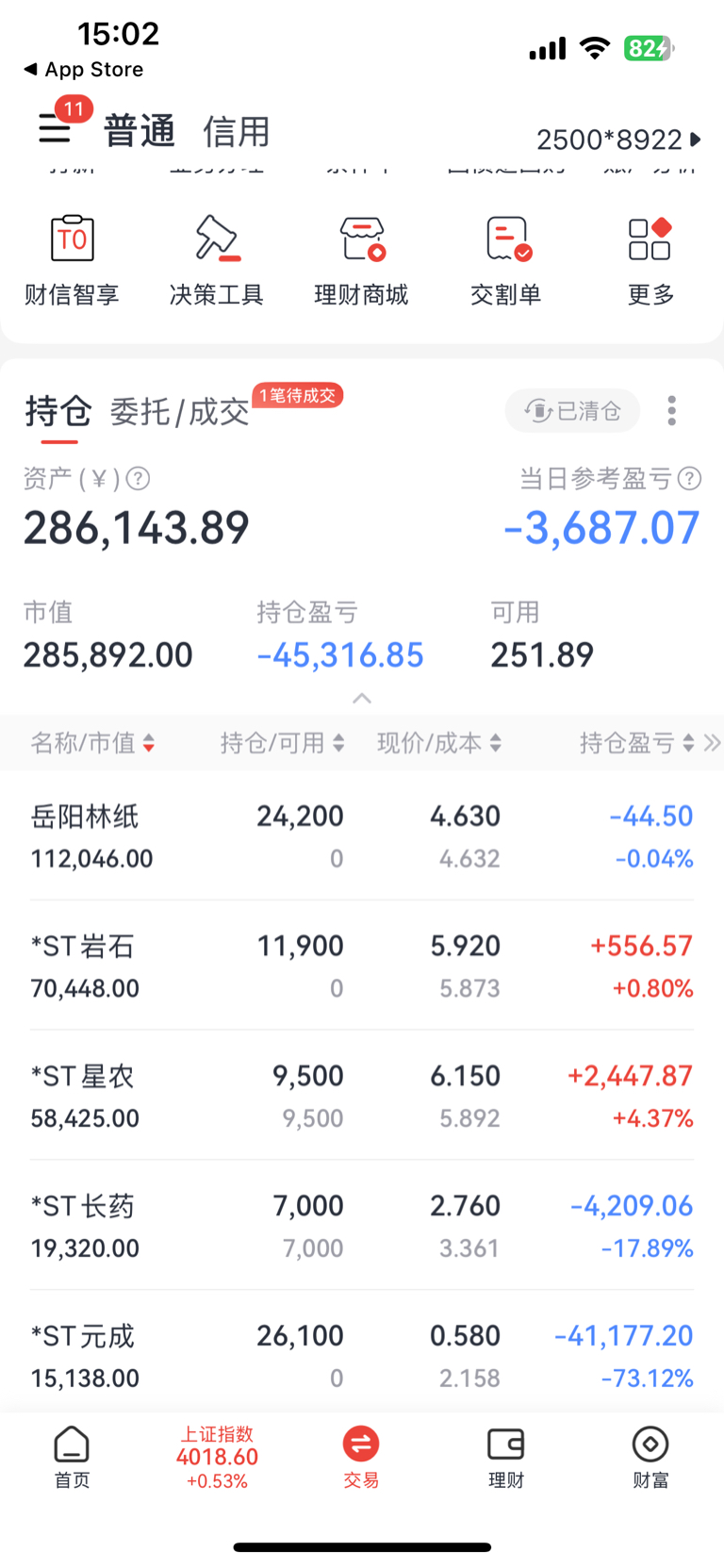 $*ST元成(SH603388)$ 还剩下一万多,就当喂勾了,走好