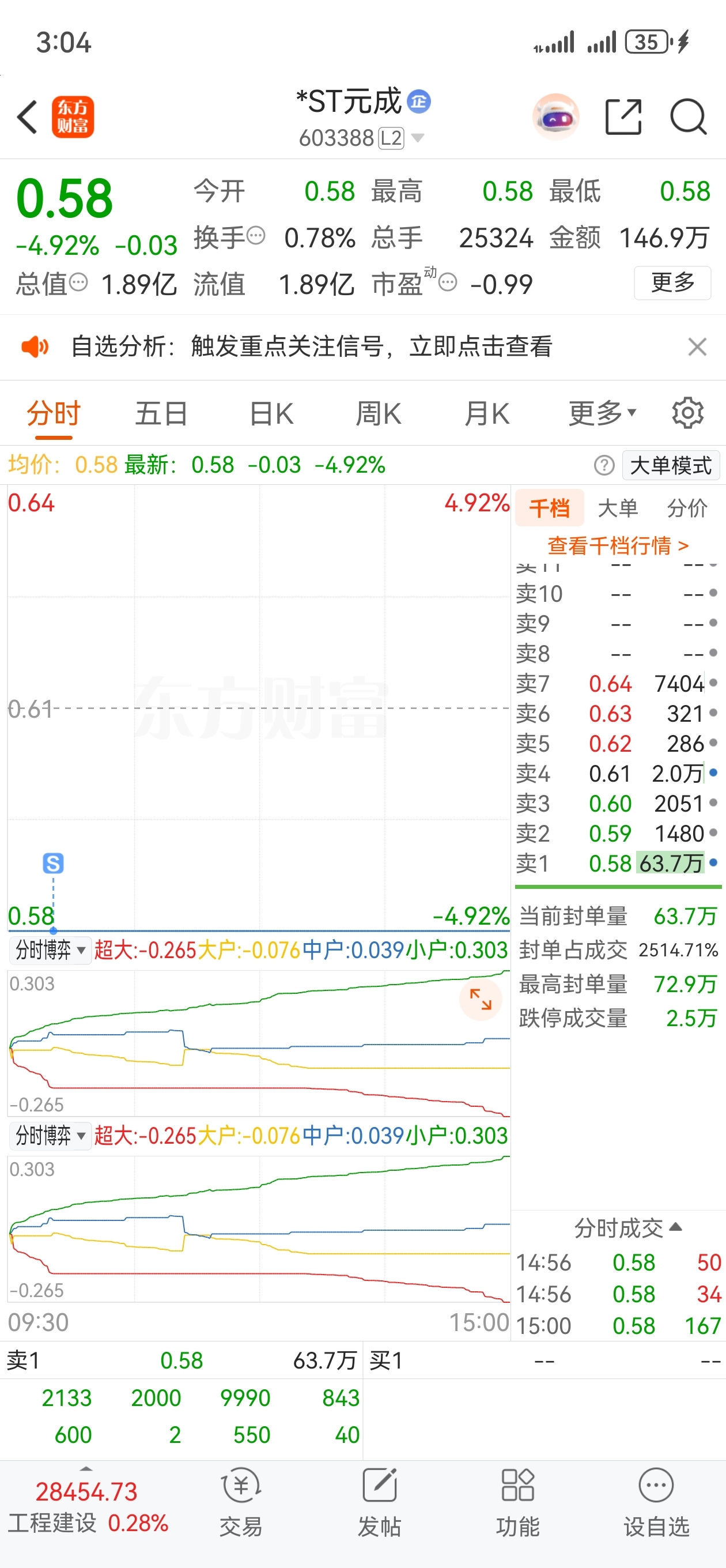 $*ST元成(SH603388)$ 输了一大半,好在今天出来咯