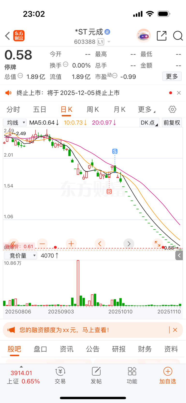 $*ST元成(SH603388)$ 很及时哦